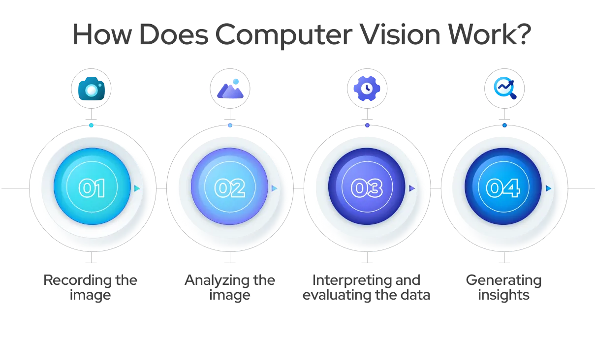 Computer vision works by allowing machines to study and interpret visual information in a similar way to how the human eye and brain function. Computer vision systems rely on cameras, sensors, and sophisticated algorithms that undergo training with vast collections of images and visual datasets.