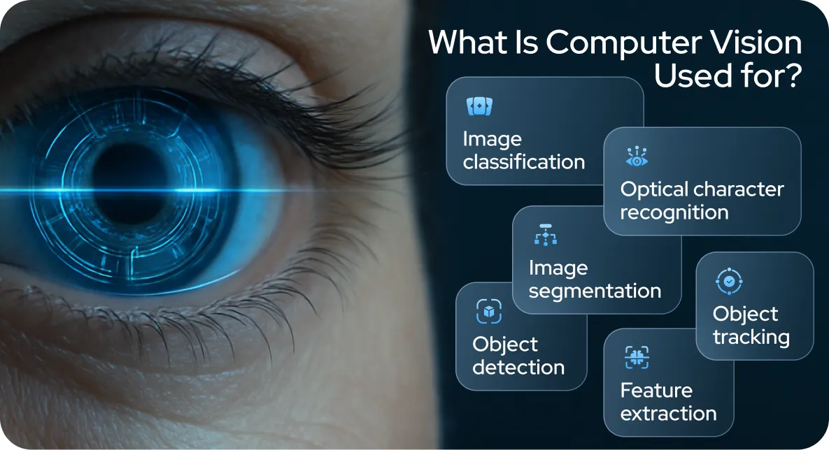 - Interpreting and evaluating the data — After the system detects patterns, it decides what the image contains. The process may involve identifying machinery in a factory, recognizing individuals in surveillance footage, or detecting possible medical conditions in diagnostic scans.