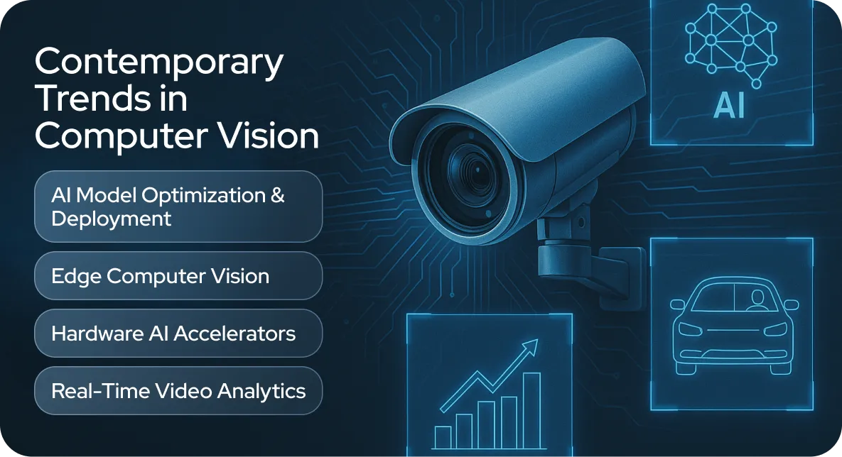 - Current computer vision trends emphasize edge AI, real-time video analytics, model optimization, and specialized hardware accelerators that power affordable on-device deployment.