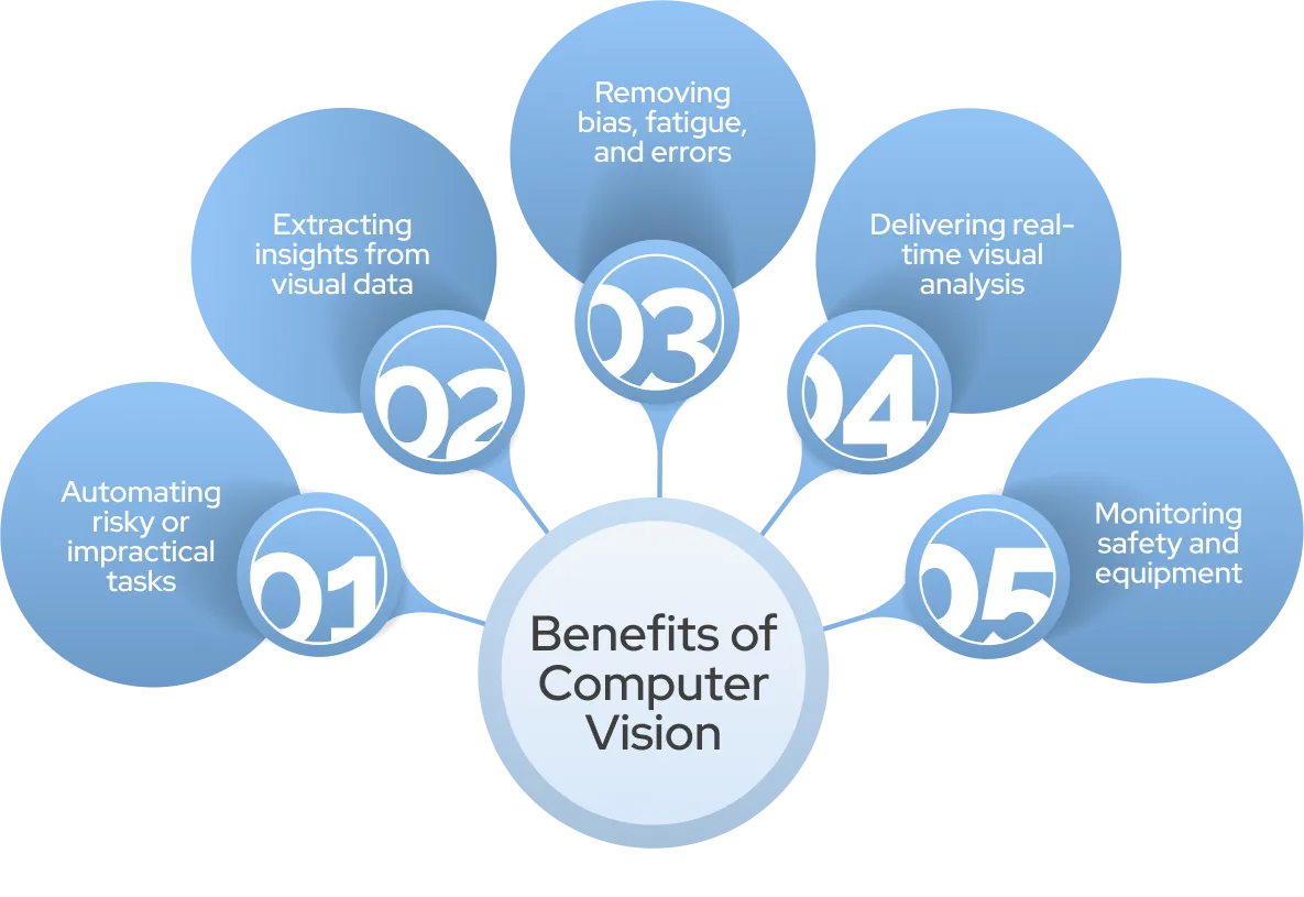 - Computer vision software speeds up decision-making, improves accuracy and safety, automates risky tasks, delivers visual business insights, and requires substantial technical resources and data governance.